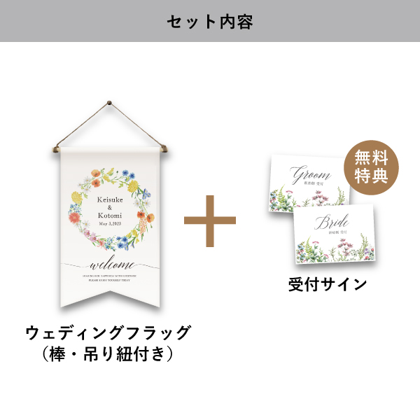 | 無料特典 | 受付サイン1組(新郎用×1組、新婦用×1組) |