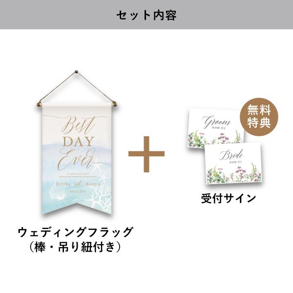| 無料特典 | 受付サイン1組(新郎用×1組、新婦用×1組) |