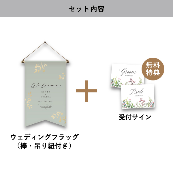 | 無料特典 | 受付サイン1組(新郎用×1組、新婦用×1組) |