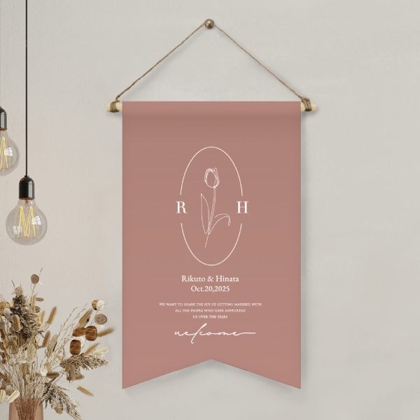 ラフでありながら、どこか繊細さも感じるイラストとグロスカラーが、甘すぎない大人ウェディングのテーマにピッタリなウェディングフラッグ。