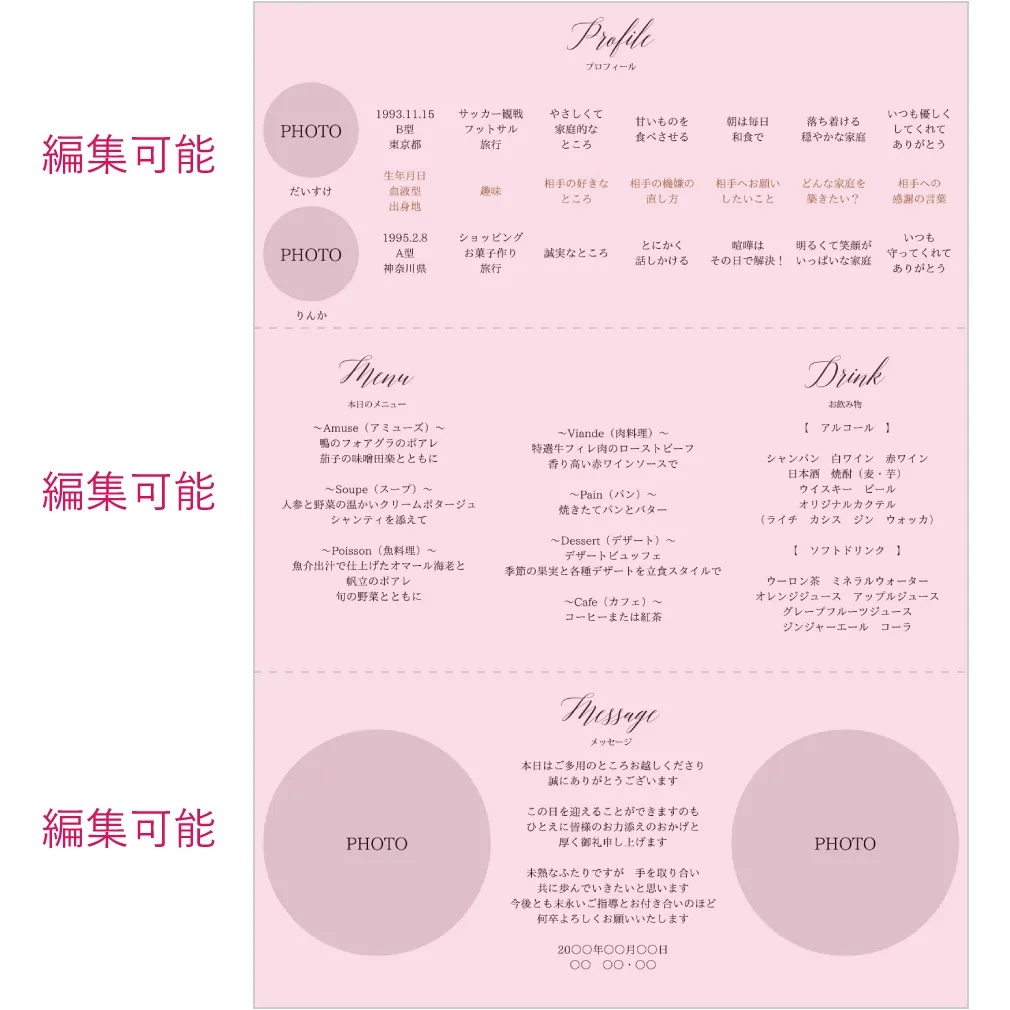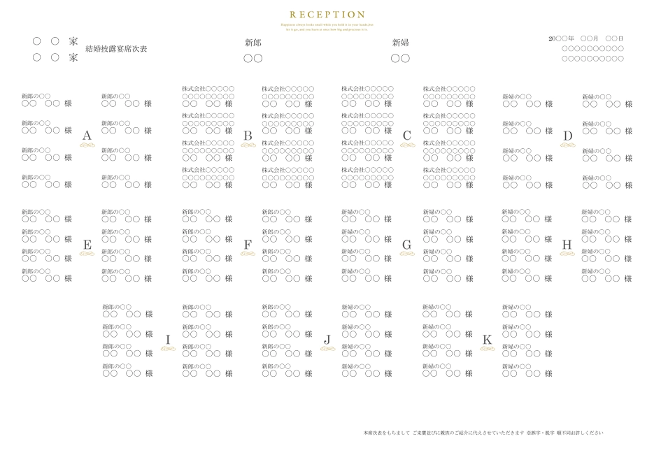 席次表にメニュー等も入りますが、受付で渡す席次表とは別に作成すると、ゲストのテーブル演出をランクアップできます。