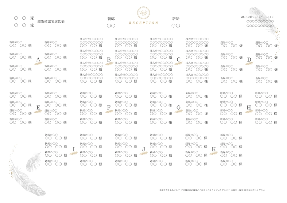 席次表にメニュー等も入りますが、受付で渡す席次表とは別に作成すると、ゲストのテーブル演出をランクアップできます。