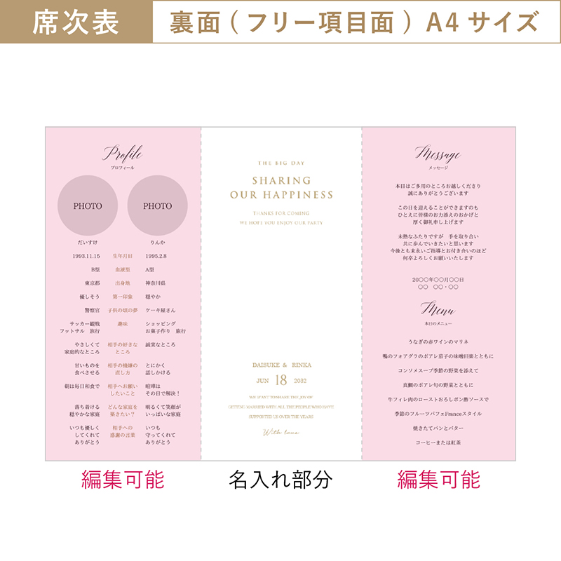 なかなか見ないデザインなので、見た目だけなら星5です。めっちゃ可愛い。 席次表と席札のセットのやりづらさが気になるため、そこが気にならない方にはオススメ!