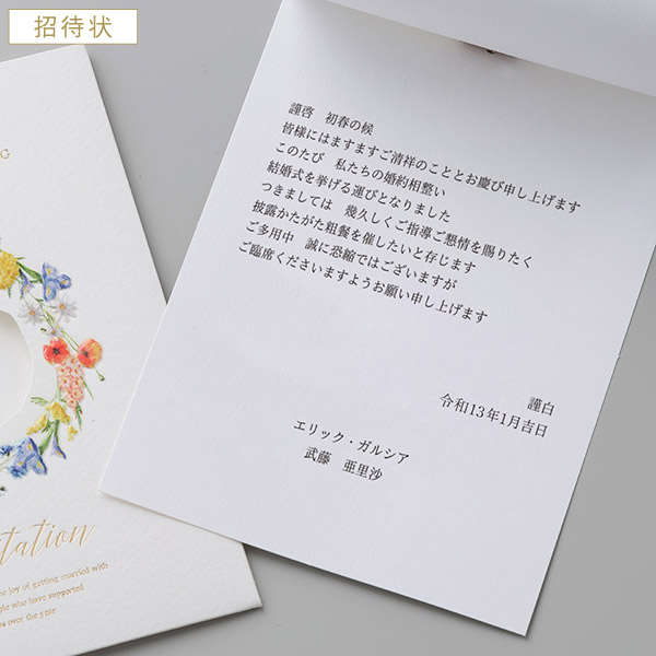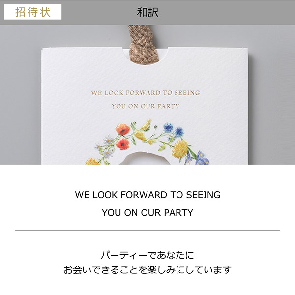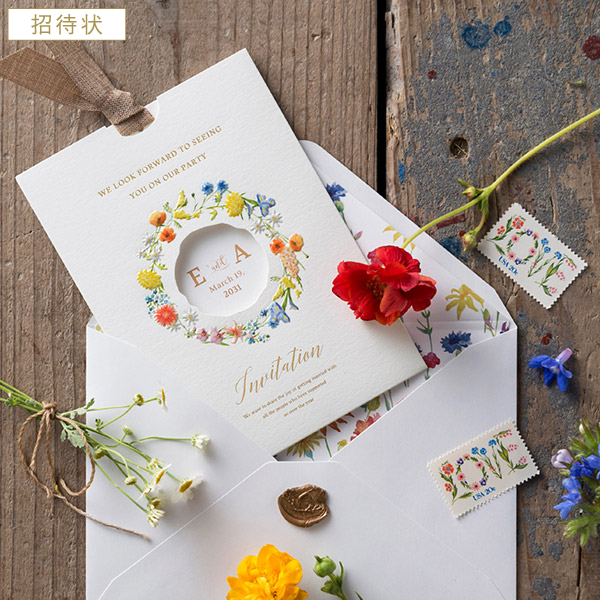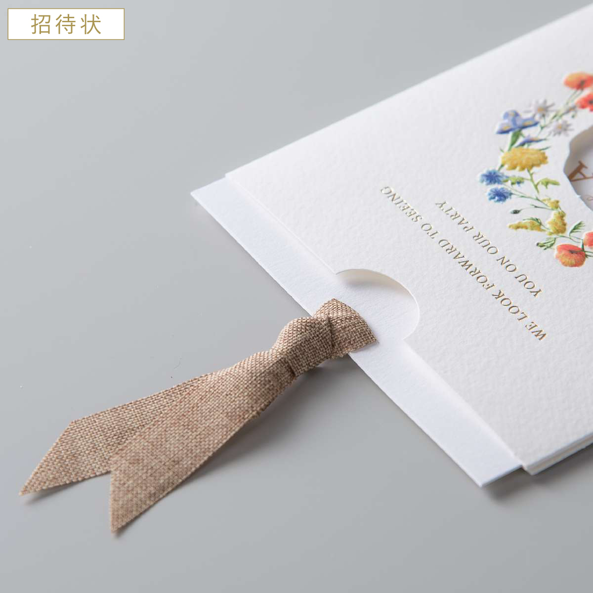 デザインや紙質を確認したくて展示されている店舗に伺いました。 デザインを一目みて気に入りました。 紙質も厚めで、持ちやすかったです。 招待状を家族や親族に送る際には組み立てが必要ですが難しさもありません。 家族からはかわいいと喜んでもらいました。 席次表の文字の大きさがやや小さいかな、と思うくらいです。 あとは席札に予備が何枚か入っていると助かるのにな、と思いました。