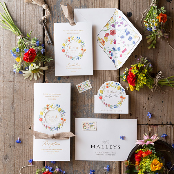 ほどよくかわいいデザインで、誰にでも合うと思います。 招待状・メニュー表・席次表・席札と、統一感あるデザインにできるのも◎
