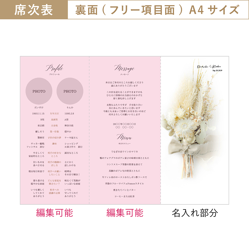 制作しやすく、式当日にはたくさんの方々に席次表が可愛いとお褒めいただきました。 友人にも勧めたいと思います。