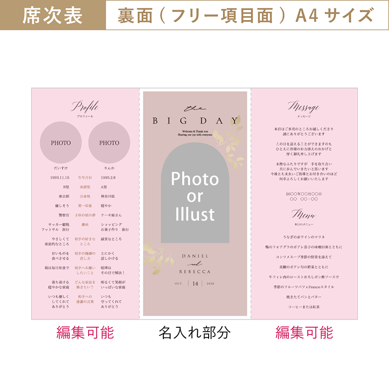 | 席次表 中紙 210×297mm(ZRホワイトA4三つ折り) | 10枚 |