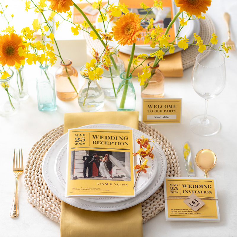 席次表にメニュー等も入りますが、受付で渡す席次表とは別に作成すると、ゲストのテーブル演出をランクアップできます。