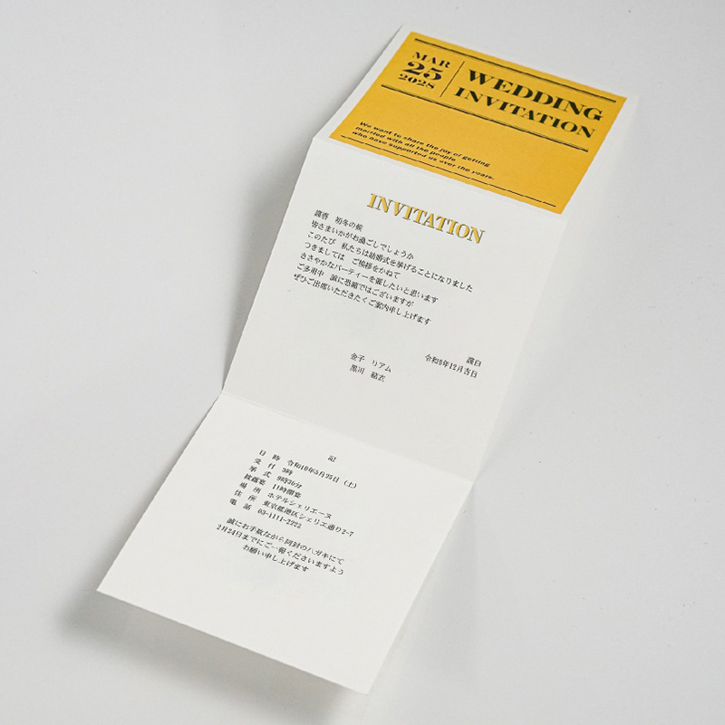| 招待状 表紙 115×345mm(ZRホワイト三折) | 10枚 |