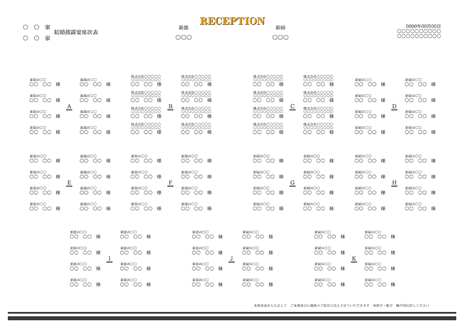 • 席次面に約80名前後のゲストの掲載が目安です。