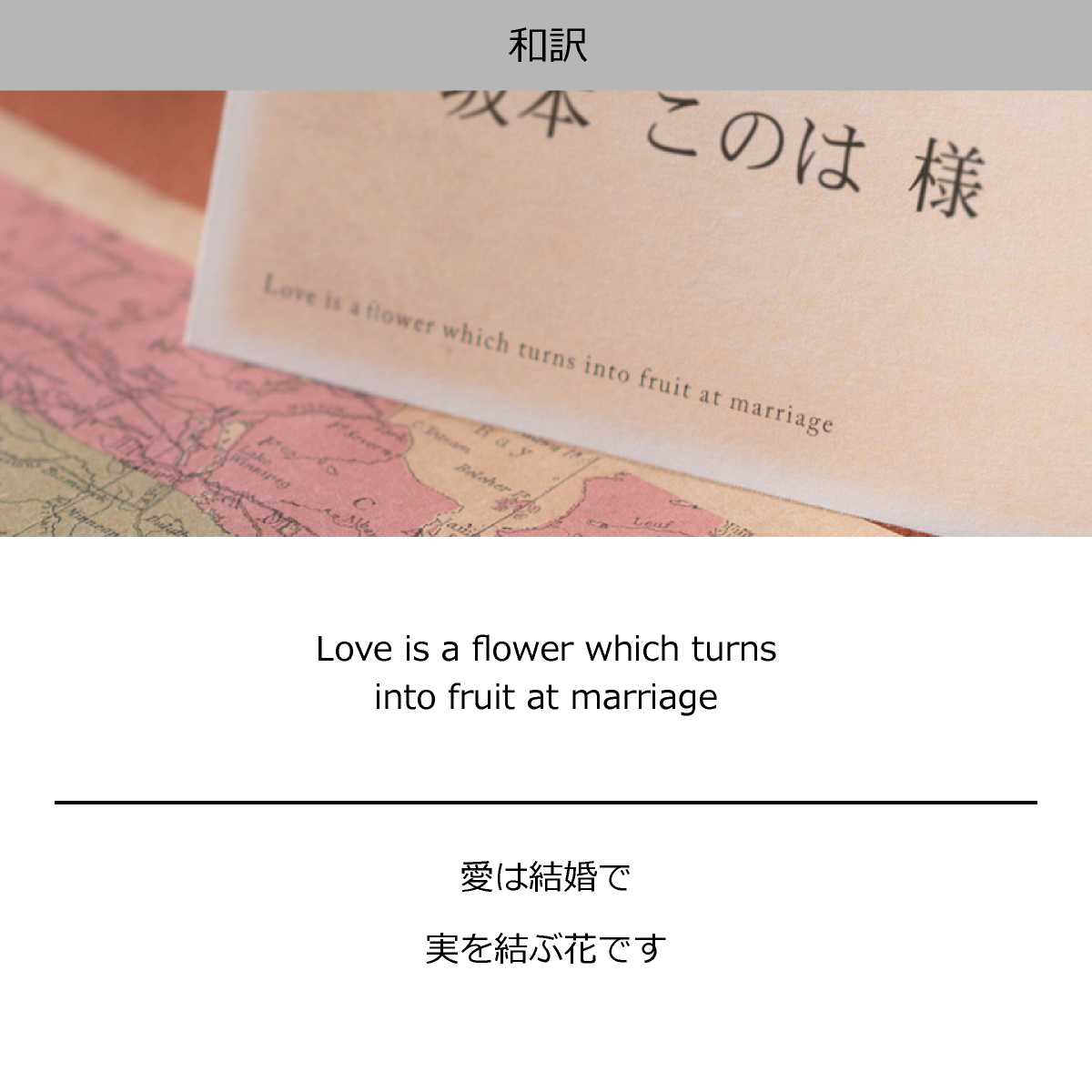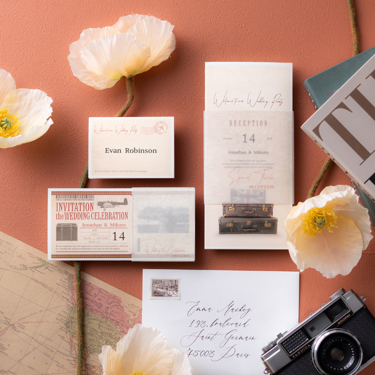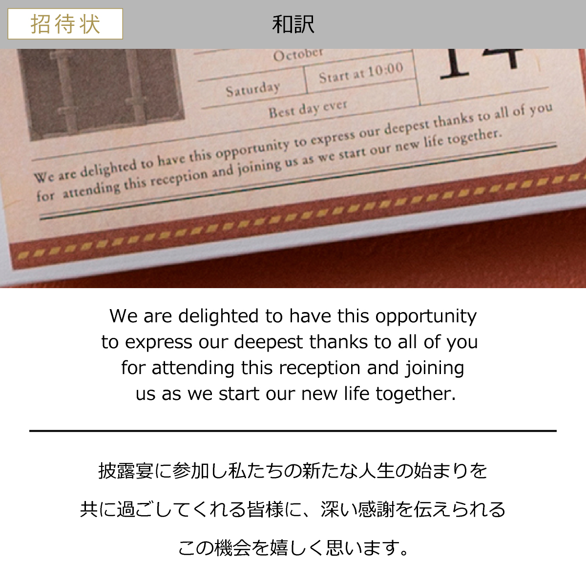 招待状、席次表、席札のセットを購入させていただきました。サンプルを取り寄せたときから、包装もとても丁寧で信用できました。作成過程も、サンプル文章などの種類が多く、大変進めやすかったです。招待状を送ったゲストからは、「素敵すぎる招待状でテンション上がった!」「センス良すぎ!」などと言っていただけてとてもうれしかったです。この度は誠にありがとうございました。