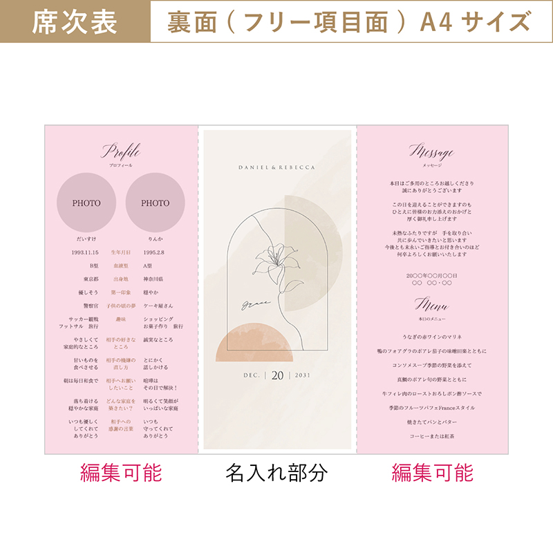 | 席次表 中紙 縦210×横297mm(A4ホワイト・三つ折筋入り) | 10枚 |