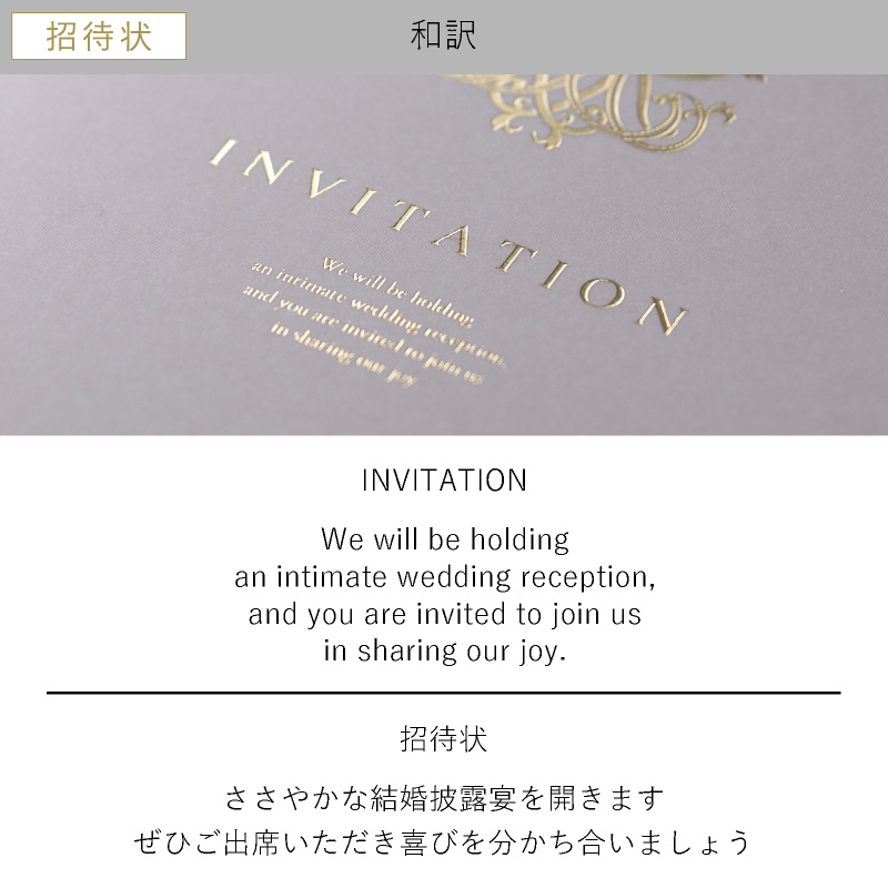 上品なデザインでゲストからも好評でした!紙とWebで招待状の送り分けも自分でアレンジできるのでお勧めです。
