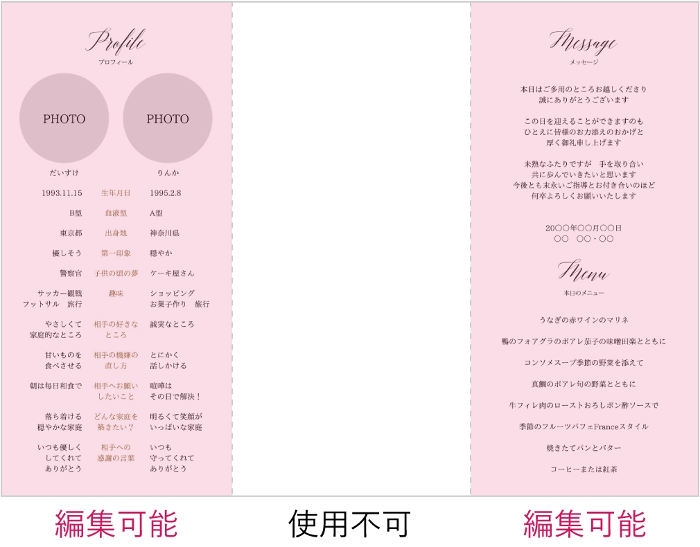 式場の招待状と迷っていましたが、サンプルを取り寄せたところしっかりした紙で表紙はレザーのような質感で高級感もありとても気に入りこちらに決めました。 折るのは少し大変ですがおすすめです!