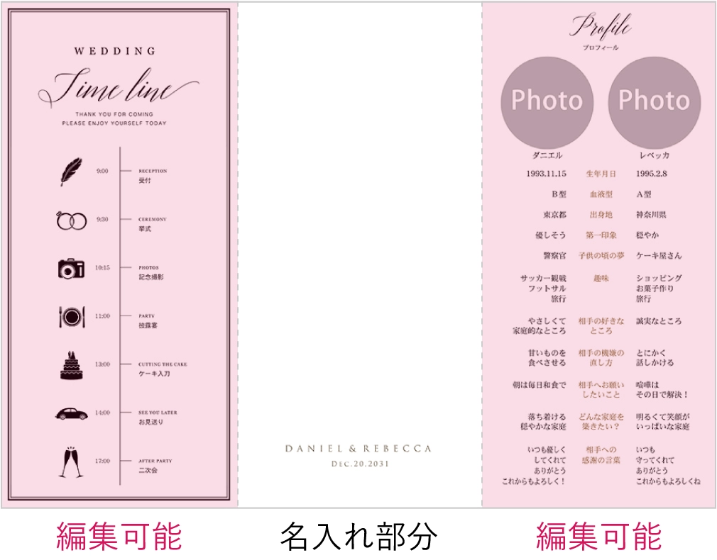 式場の物を使うと結構なお値段で、こちらでは価格が安く印刷までしてくれるので、とても良かったです。 分からないことはLINEで聞きながら丁寧に教えて頂くことができました。