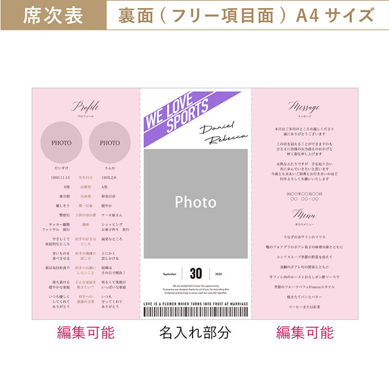 【54%OFF】Grand Sport Lively -グランスポーツライブリー パープル 【印刷込】結婚式 招待状(無料)+A4席次表+席札セット|結婚式 招待状ならPIARY(ピアリー)