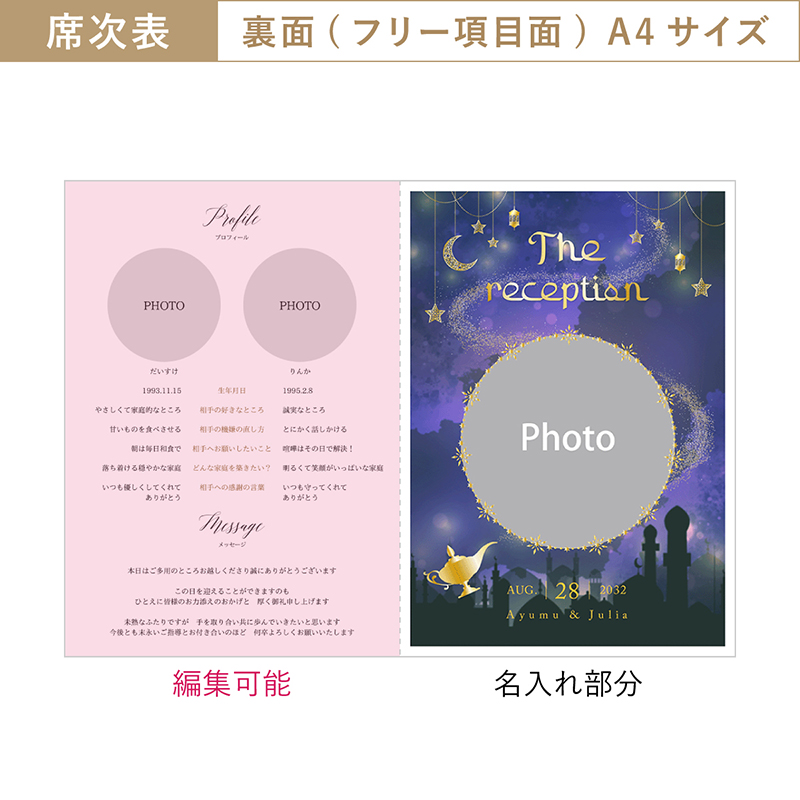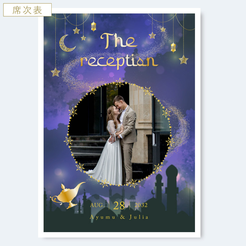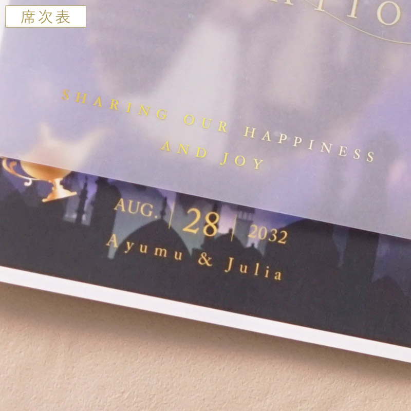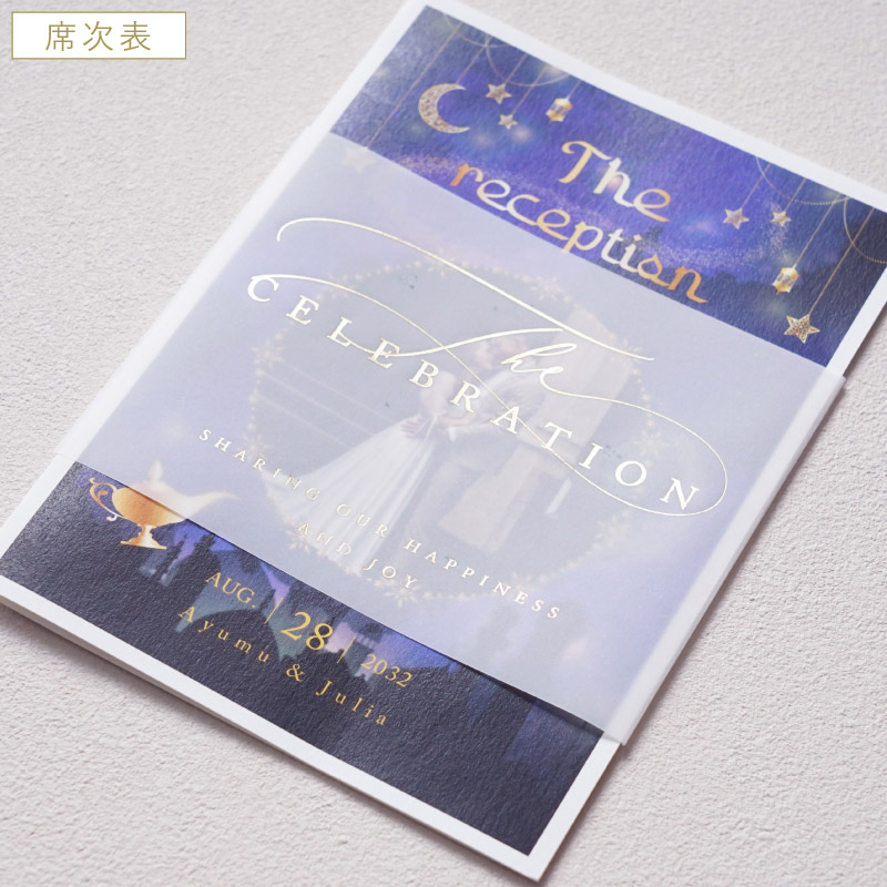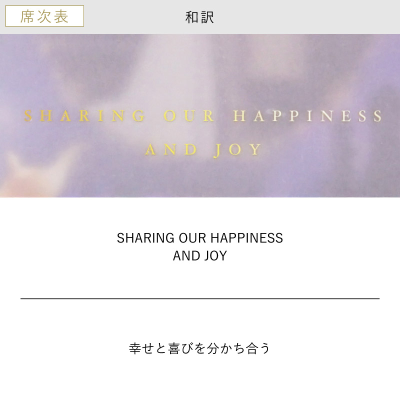席次表にメニュー等も入りますが、受付で渡す席次表とは別に作成すると、ゲストのテーブル演出をランクアップできます。