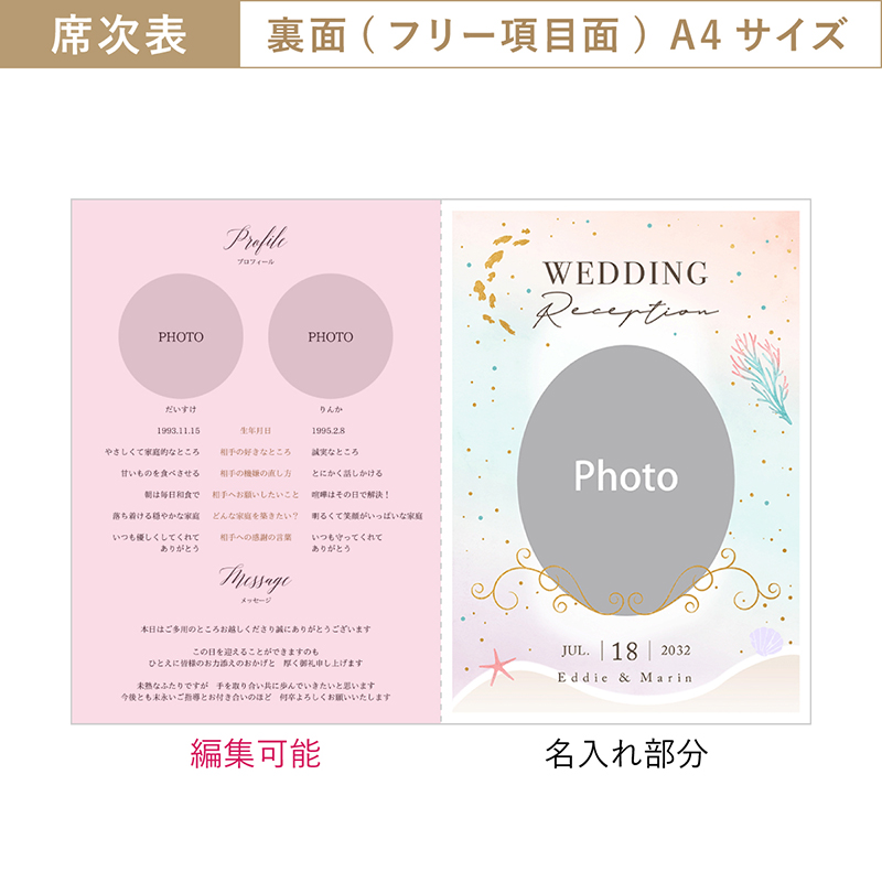 【55%OFF】Mermaid Serenity -マーメイド・セレニティ- 【印刷込】結婚式 招待状(無料)+A4席次表+席札セット|結婚式 招待状ならPIARY(ピアリー)