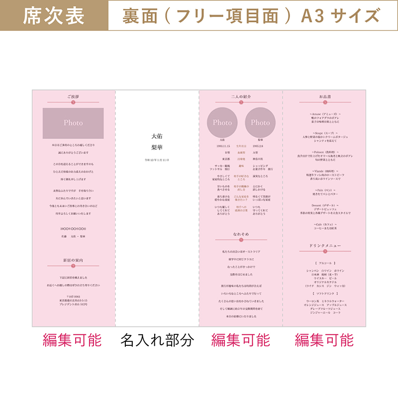 | 席次表 中紙 縦297×横420mm(A3アイボリー・四つ折筋入り観音開き) | 10枚 |