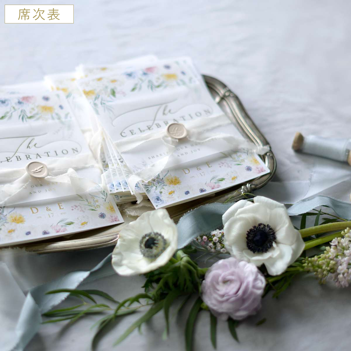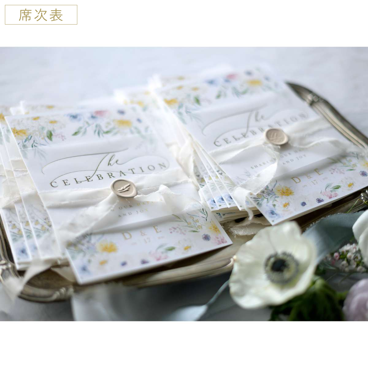 席次表にメニュー等も入りますが、受付で渡す席次表とは別に作成すると、ゲストのテーブル演出をランクアップできます。
