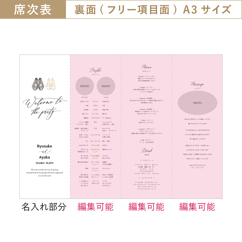 | 席次表 表紙 縦297×横420mm(A3ホワイト) | 10枚 |