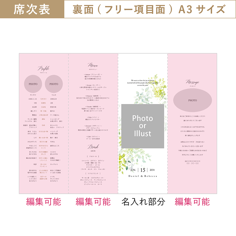 | 席次表 中紙 縦297×横420mm(A3アイボリー・四つ折筋入り観音開き) | 10枚 |