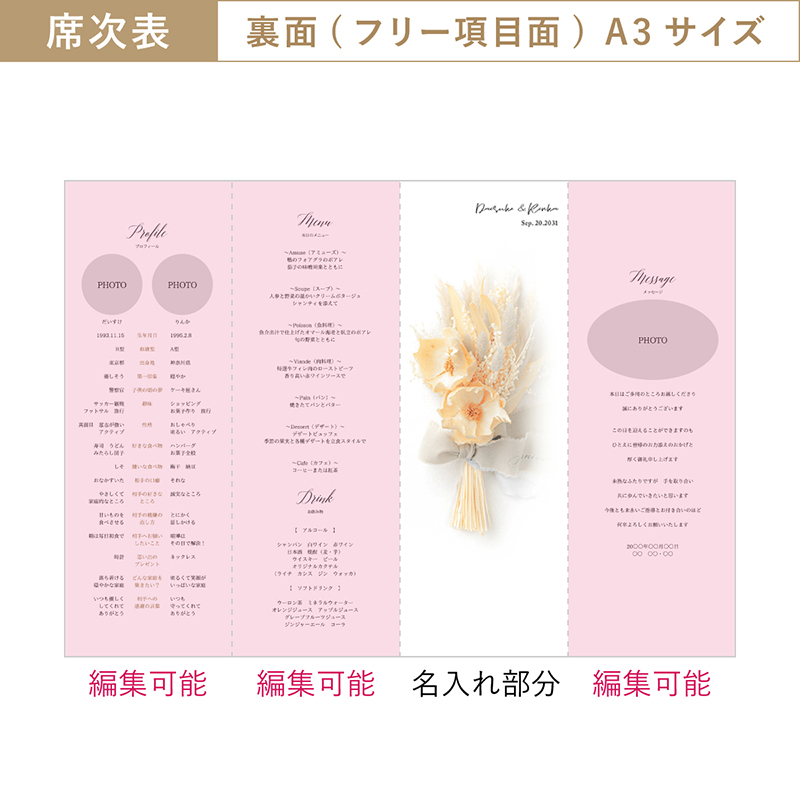 印刷込キット(A3席次表)+プロフィールブック+メニュー表【無料】