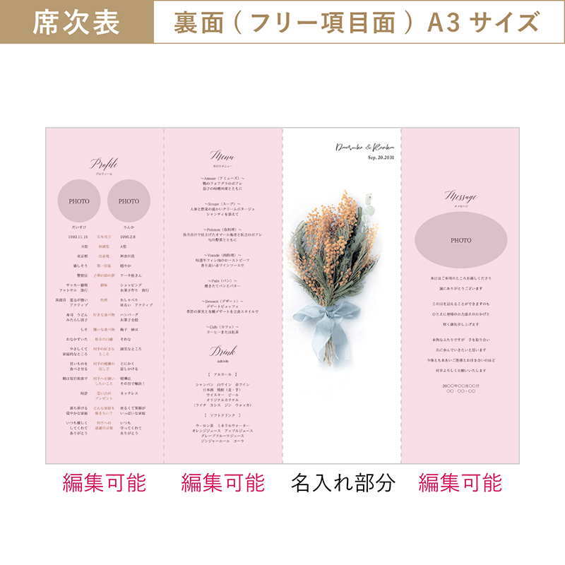 印刷込キット(A3席次表)+プロフィールブック+メニュー表【無料】