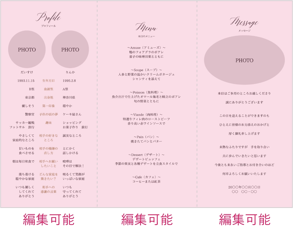 席札や、見た目のおしゃれさで選びました。実物も、箔押しにも高級感がありとても良いと思います。ただ席次表のリボンを結ぶのがやや面倒そうなので、そこは頑張りどころだと思っています……