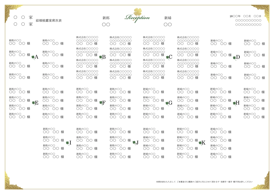 席次表にメニュー等も入りますが、受付で渡す席次表とは別に作成すると、ゲストのテーブル演出をランクアップできます。