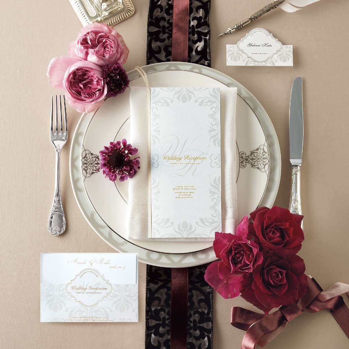 厚紙に模様が印字されている程度を想像していましたが、光沢があり少し立体的な柄でお値段以上の高級感を感じました。 席次表は、初めはリボン付けに手こずりましたが、コツをつかめば片結びするだけなので問題なくできました。 プロフィールブックを作らなかったため、席次表と一緒にちょっとしたプロフィールと写真を入れられたのはよかったです。 席札は裏の余白が少ないためメッセージを裏に書きたい人は少し書きづらいかなと思いました。 ゲストからも素敵なデザインと言ってもらえました