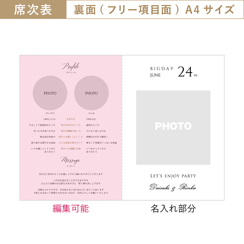 トレーシア ゴールドスパークル【印刷込】A3席次表+席札...