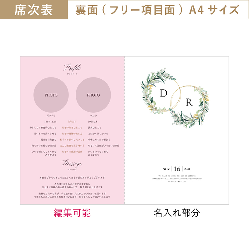 マリアージュ リース【印刷込】A4席次表+席札(無料)セ...
