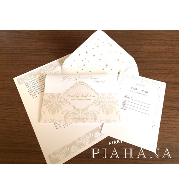 デザインとても気に入りましたが 本状を取り出すと真っ白に名前と日付なのでだいぶシンプルでした 作成時、テンプレートがあり、助かりました