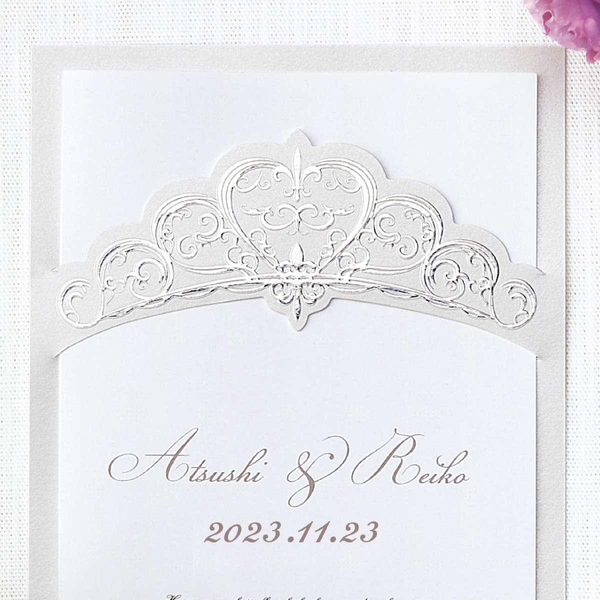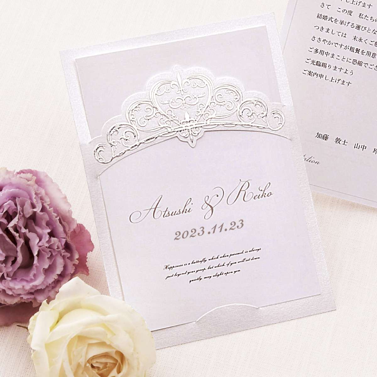 ピンクと迷いましたが、新郎の関係者にも郵送することを考慮してホワイトにしました。パールに光沢があって、とても綺麗です。
