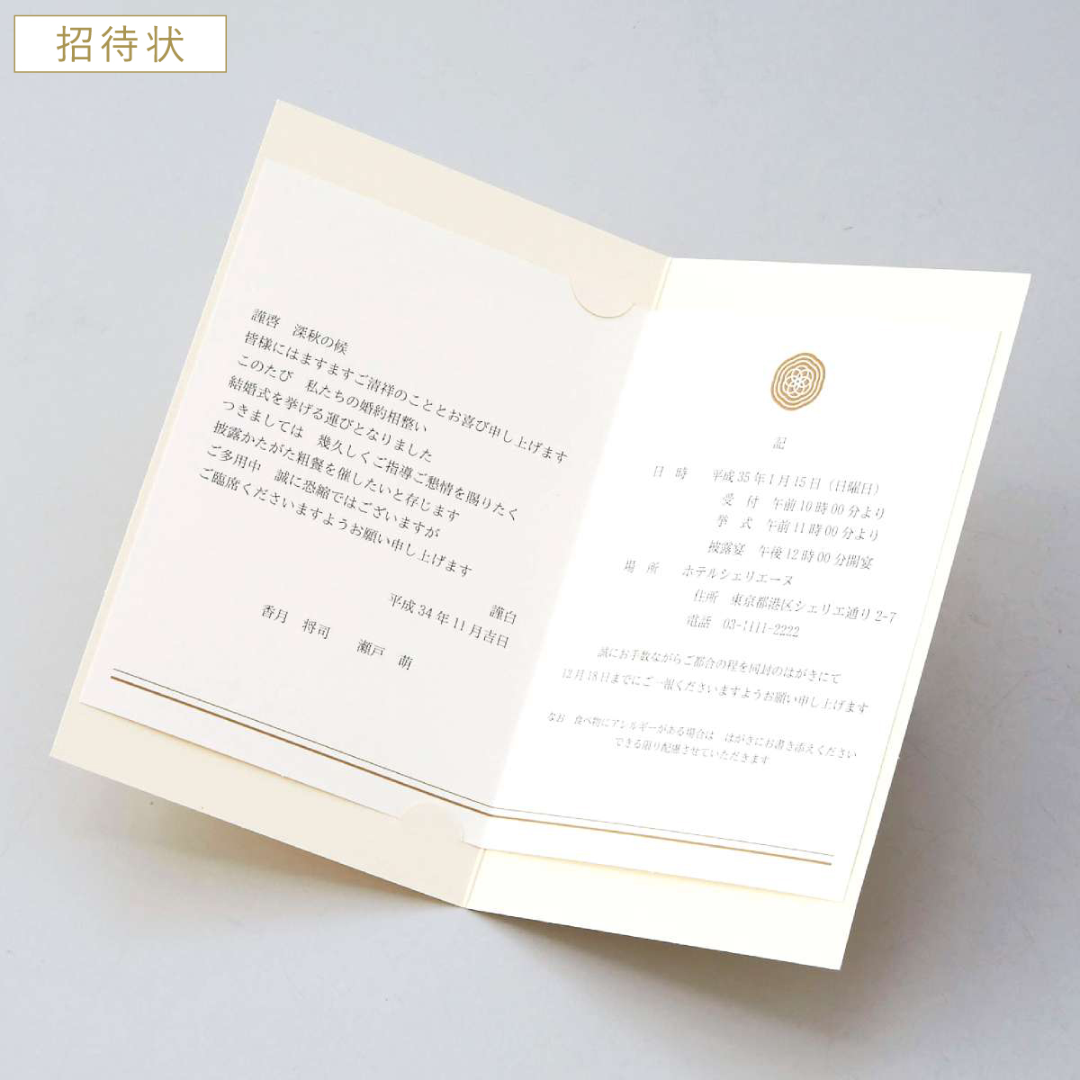 | 招待状 中紙 127×184mm (ニューナチュラル・二つ折筋入り) | 10枚 |