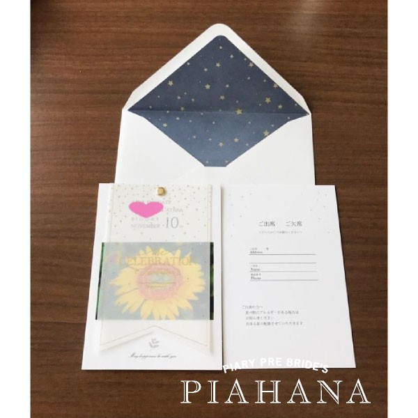 招待状を購入させていただきました。 デザインがとても可愛いく、透け感のあるペーパーがオシャレで気に入りました。 おすすめです!