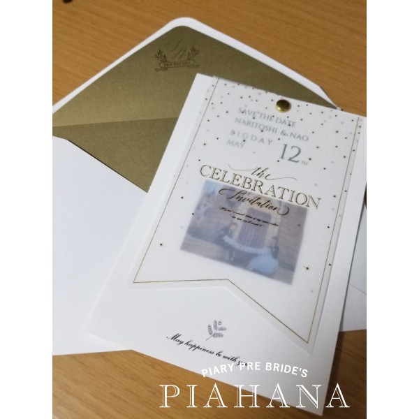 コロナ禍で式を3年延期していましたが今年の春挙げられることになり、以前延期になった方への救済措置として招待状代金無料、印刷代金のみで良いというキャンペーンに申し込んでいたのでそちらを利用させて頂きました。 前回とは違うデザインにしたのですがとても素敵な仕上がりとなり大満足です☺︎ 金具を取り付けるタイプにしたので少々手間と時間はかかりましたがそのおかげで高級感のある素敵な招待状となりました! 延期などで気持ちが下がっていたので、無料でもう一度作ってくださる等沢山ご配慮頂き大変ありがたかったです。 本当にありがとうございました🙇♀️