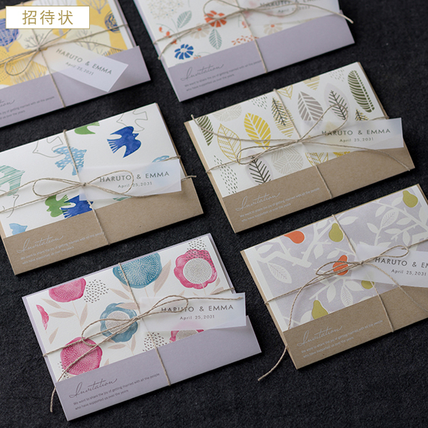 北欧風などがとっても好きで一目惚れした招待状でした! 紐を結ぶのは少し手こずりましたがとっても可愛いものが出来て、可愛いと評判でした!!