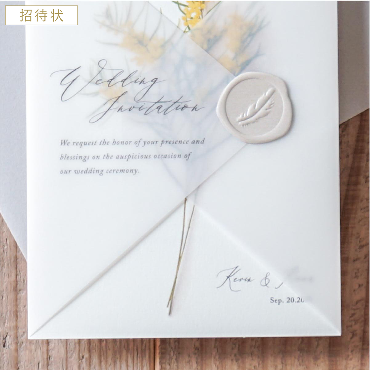 結婚式のテーマがミモザだったので、ぴったりの招待状が見つかり良かったです。基本的にはWebの招待状を送りましたが、一部紙が必要で、値段も安かったので助かりました。