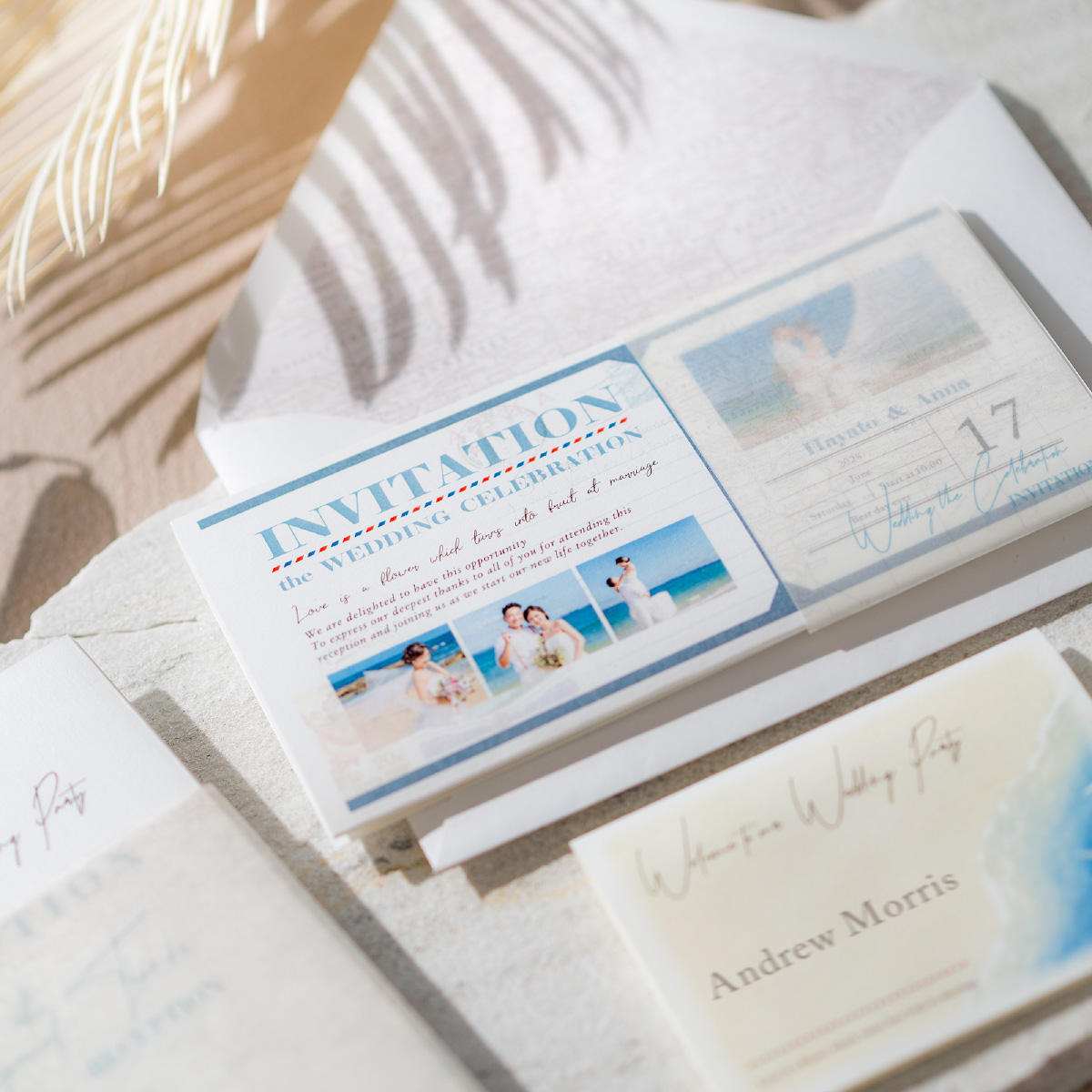 今回、ハワイでの挙式のためにこちらを購入しました。 自分で入力するところもとてもわかりやすく、時間がかからず作ることができました。 届いてみると写真通りハワイでの挙式にぴったりなかわいい仕上がりでした! ありがとうございました!