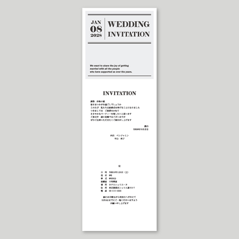 | 招待状 表紙 115×345mm(ZRホワイト三折) | 10枚 |
