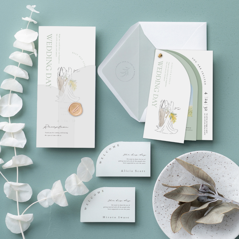 | 招待状 表紙 (ラウンド5枚組)外寸100×155mm | 10セット |